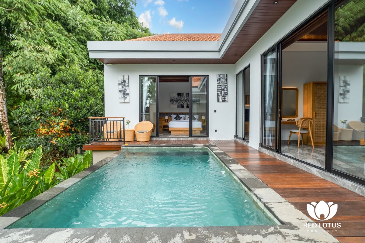 It’s all about that authentic Balinese living sensation. Waking up to birdsong and rustling leaves, cooling off in your private pool surrounded by greenery. And just settling into the island’s natural rhythm without any pretense. Perfect for couples seeking seclusion, friends sharing a laid-back getaway, or solo travelers who want a quiet, homey spot to recharge. Villa Arunika delivers the real feel of staying in a traditional Balinese house. With your own space and the magic of the jungle right outside the private Villa Arunika Ubud.