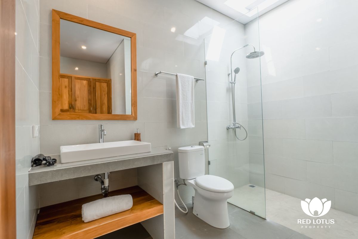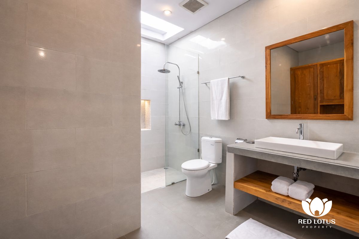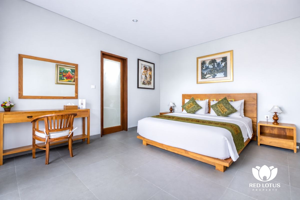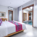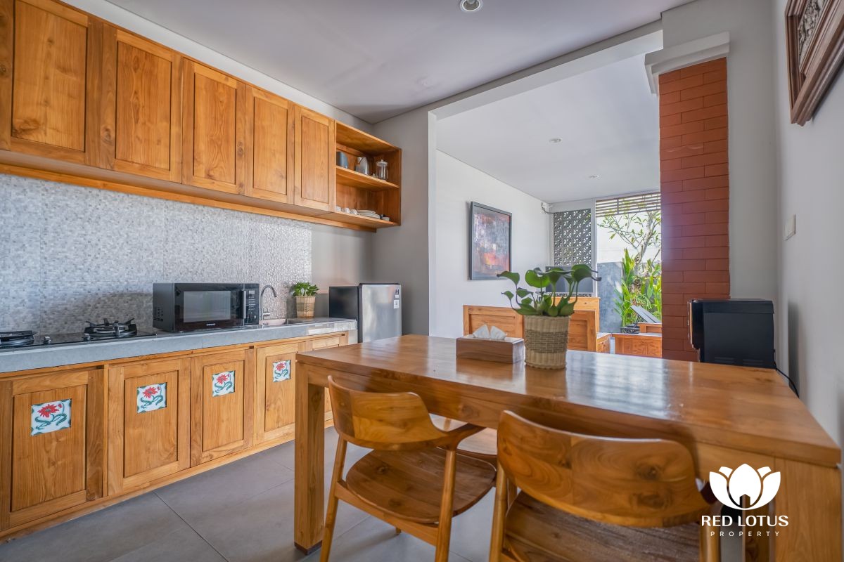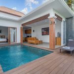 The design leans into a warm, home-style feel with a touch of elegance, creating a comfortable place to unwind after a day out in Ubud. At the center, a private swimming pool adds a refreshing touch—ideal for slow mornings with coffee, relaxed afternoons by the water, or simply enjoying the calm surroundings.