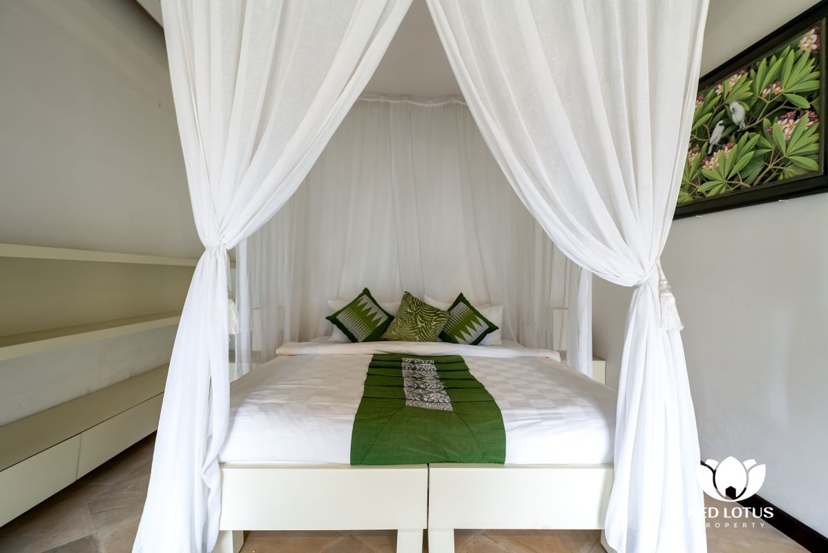 Upon entering the refined rooms of this villa, one is greeted with a simplistic yet opulent aesthetic. Each piece of furniture and furnishings has been expertly crafted to exude an air of effortless elegance and luxury. The main room of the villa is particularly grand and boasts balconies that offer breathtaking views of valleys and mountains. The main building leads to a lush expanse of grass, where guests can access The Lotus House. It’s a building that showcases a harmonious blend of traditional Balinese and contemporary architectural styles. The Lotus House comprises two bedrooms, each thoughtfully designed to provide the ultimate in comfort and style.